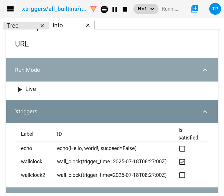 Xtriggers, wallclock triggers, retry triggers and task run mode are now shown in the information view:
